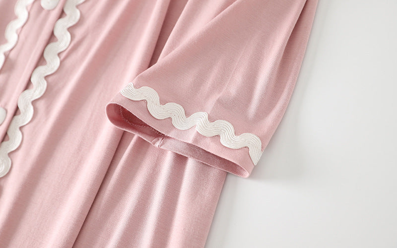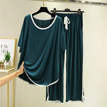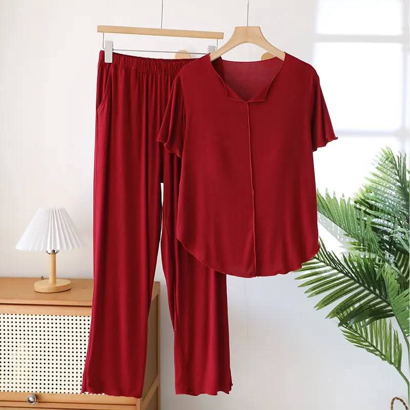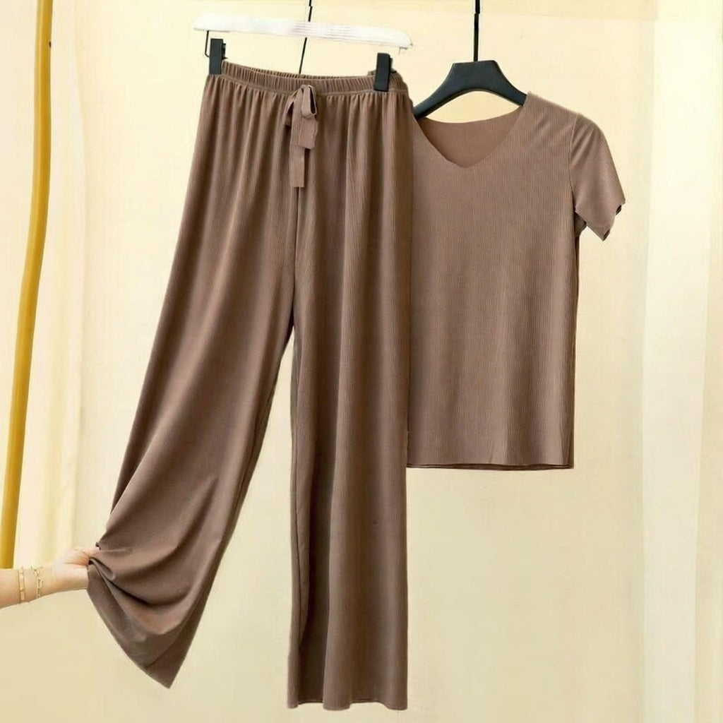 Women's Soft Modal V-Neck Short Sleeve Loungewear Set – Comfortable Pajama Top & Bottom