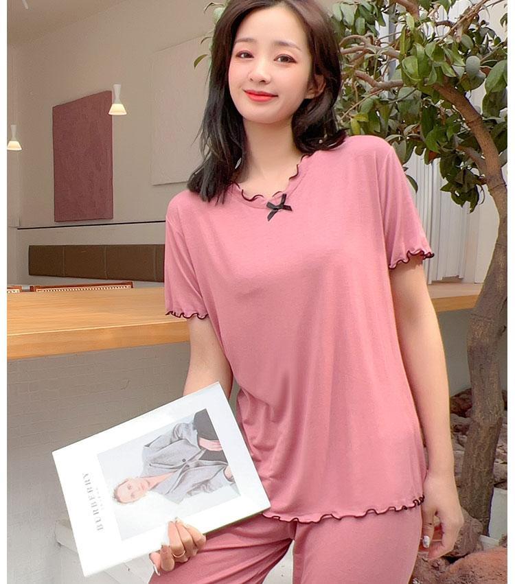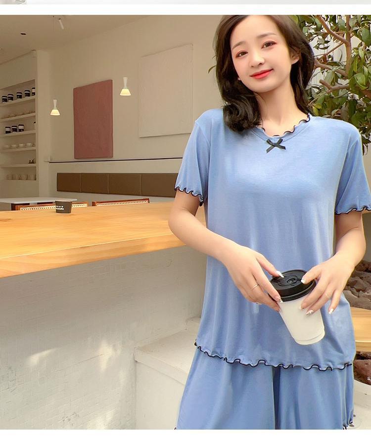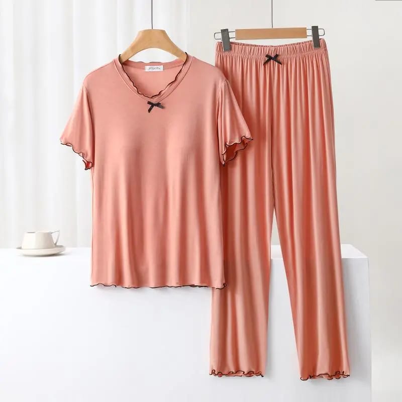 Modal summer v neck in built padded bra lounge set for younger lady